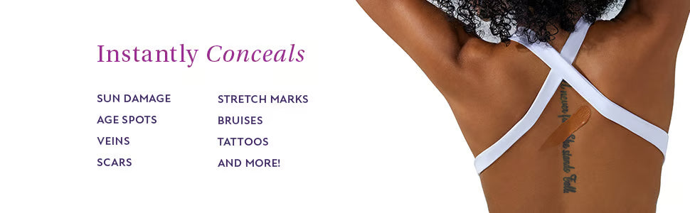 Instantly – Conceals veins, scars, and blemishes in seconds. -