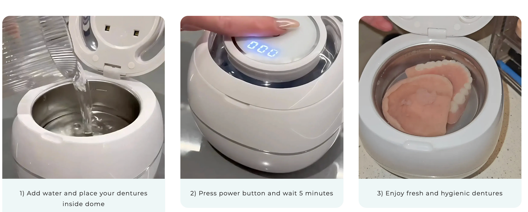 ✅ Yes – 100%. Denture Dome uses medical-grade UV-C sanitizing light (same tech trusted in hospitals) to kill 99.9% of odor-causing bacteria, fungi, and viruses in just 8 minutes. Unlike soaking in tablets, UV-C reaches every crevice — no residue, no chemicals. Wake up to clinically clean, minty-fresh dentures every morning. Pharmacist tip: Pair with TheraBreath Fresh Breath Rinse for all-day confidence.