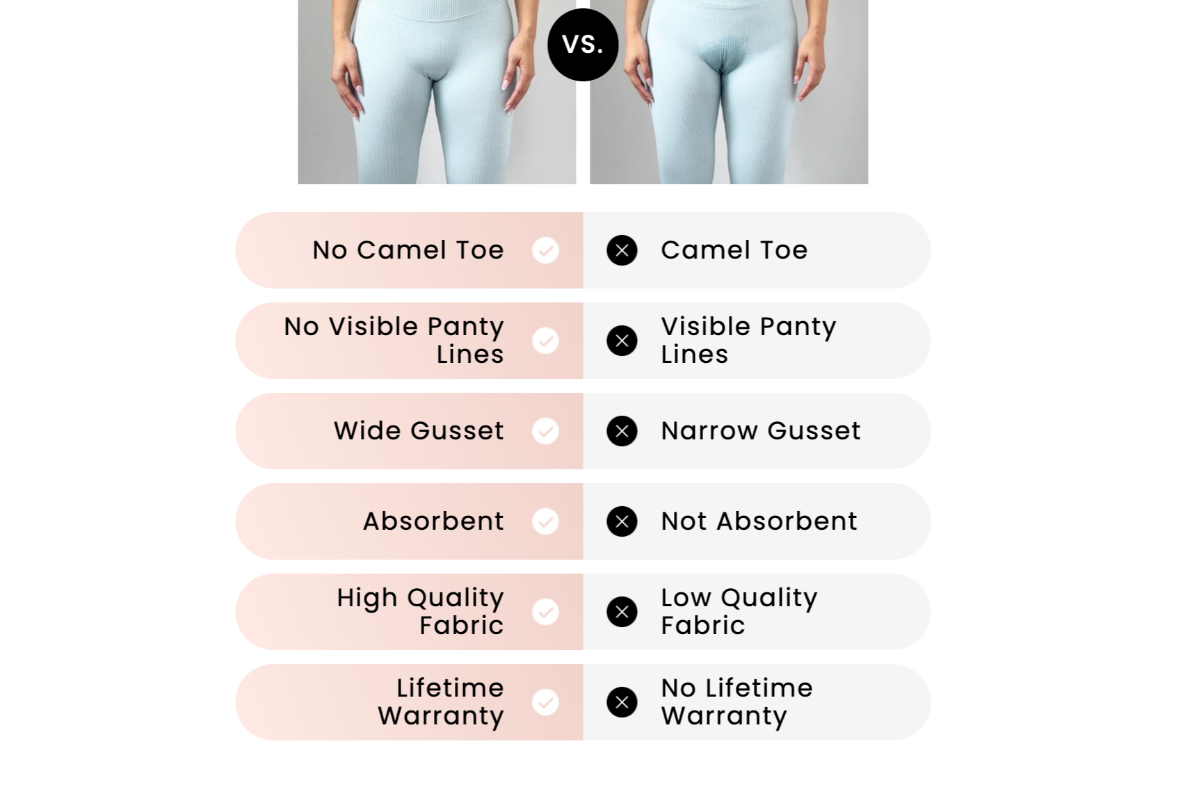 Camel Toe Proof Technology | Seamless | Wide Absorbent Gusset | High Rise