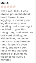 We’ve tested our thong under leggings most notorious for creating camel toe, such as those with a front seam and they’ve passed the test with flying colors.
